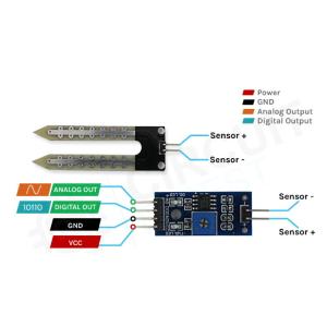 Soil moisture module is most sensitive to the ambient humidity is generally used to detect the moisture content of the soil. Module to reach the threshold value is set in the soil moisture, DO port output high, when the the soil humidity exceeds a set threshold value, the module D0 output low.